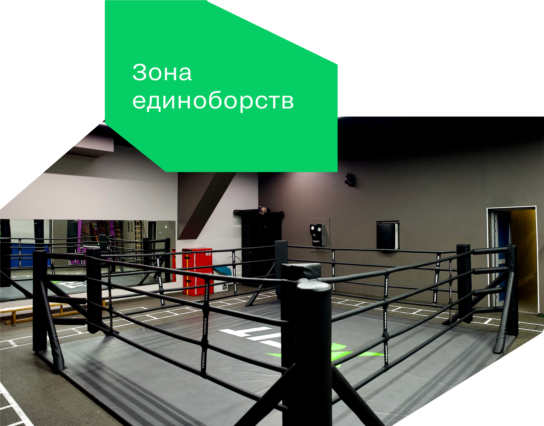 Тренировочная зона единоборств содержит все необходимое для эффективных занятий различными боевыми искусствами
